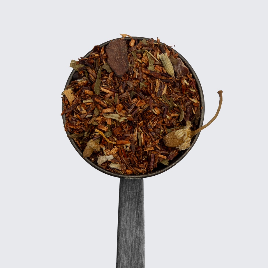 With a base of Egyptian chamomile and South African rooibos, a hint of French lavender and a kiss of Dominican dark chocolate, this is a mix of pure decadence and tranquility, the perfect recipe to wipe away a long, hard day. As you prepare for a relaxing evening, this herbal tea will help set the mood.